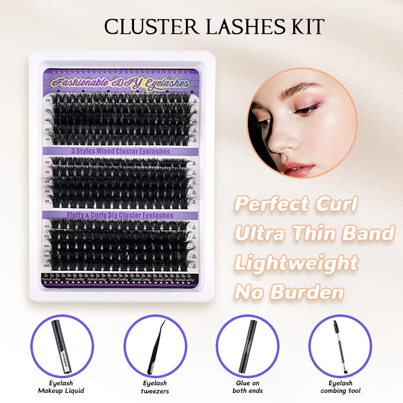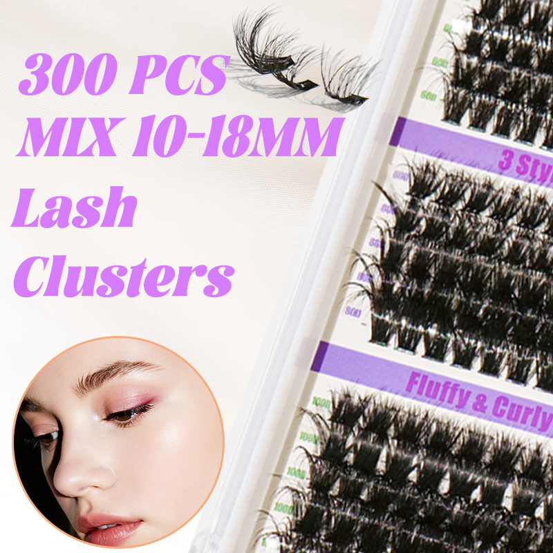 300 clusters of thick D-curve false lashes—your go-to for lush, natural volume.